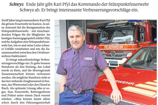 Zwölf Jahre lang kommandierte Kari Pfyl die grösste Feuerwehr im Kanton Schwyz.