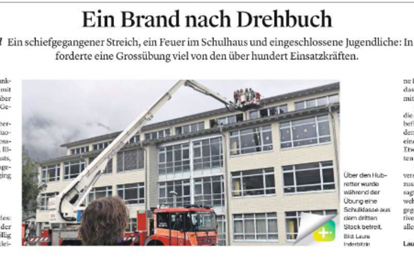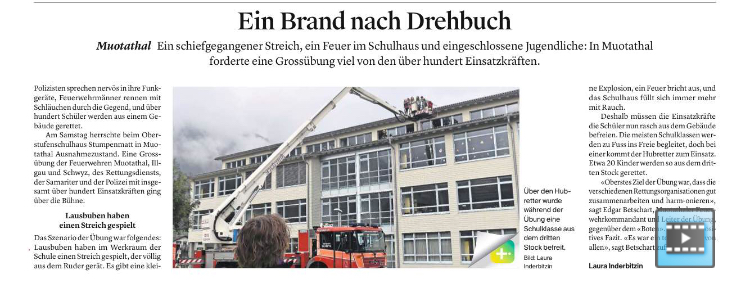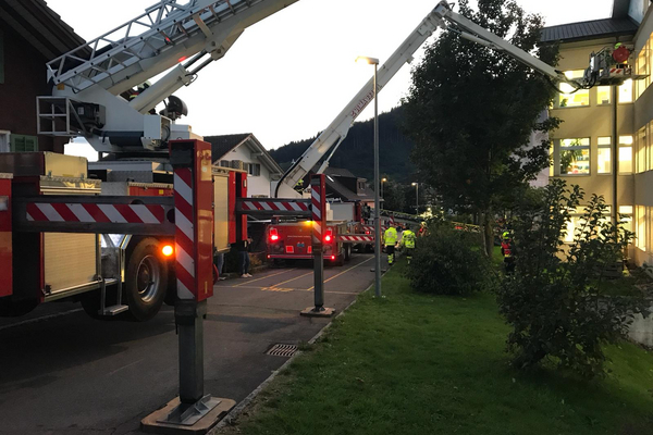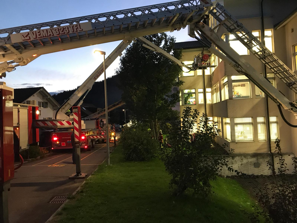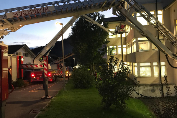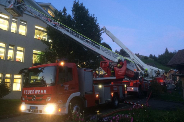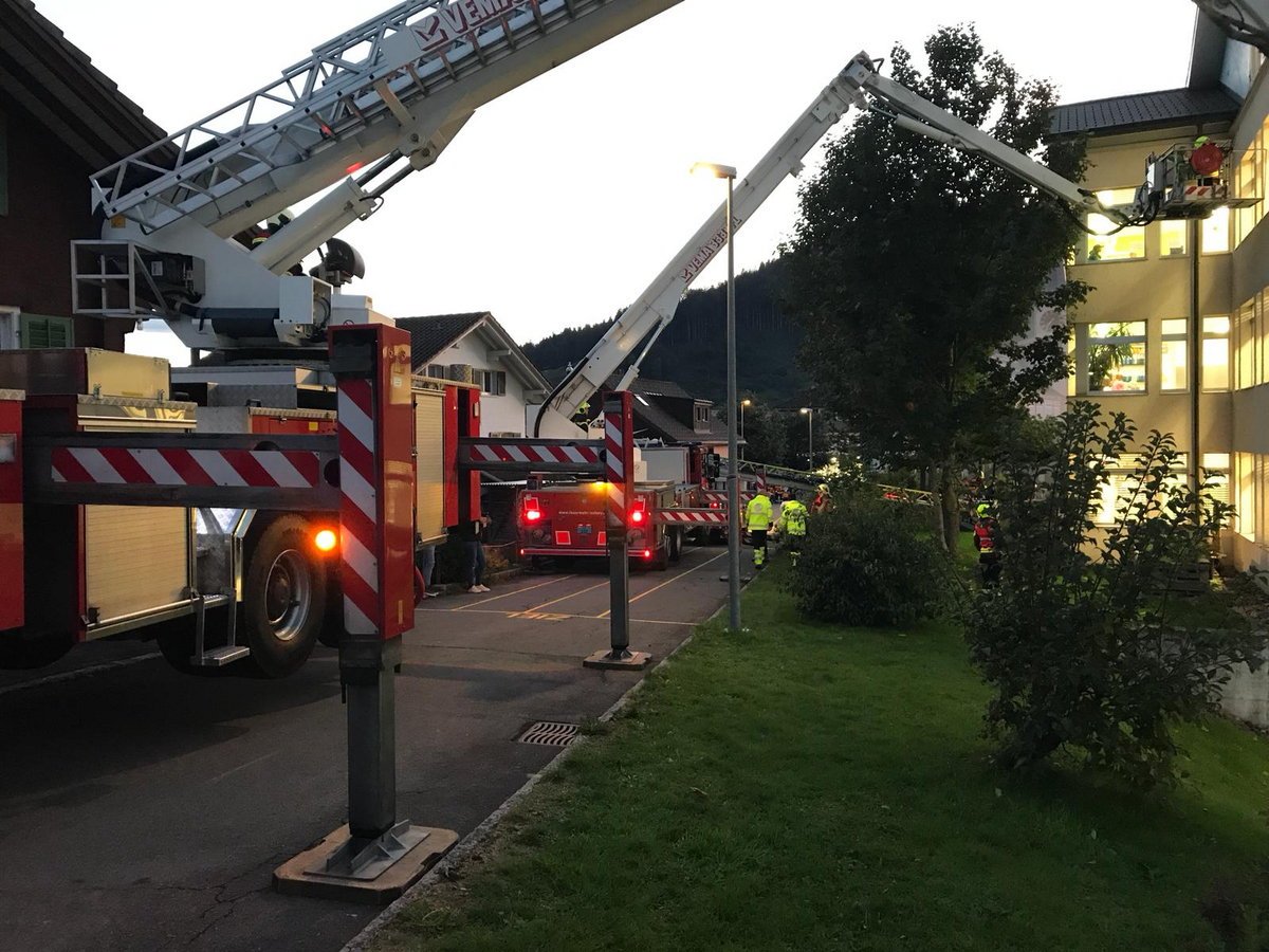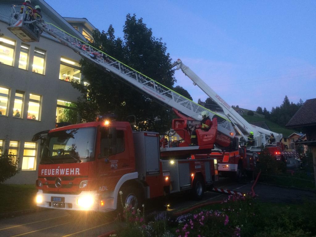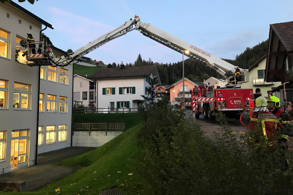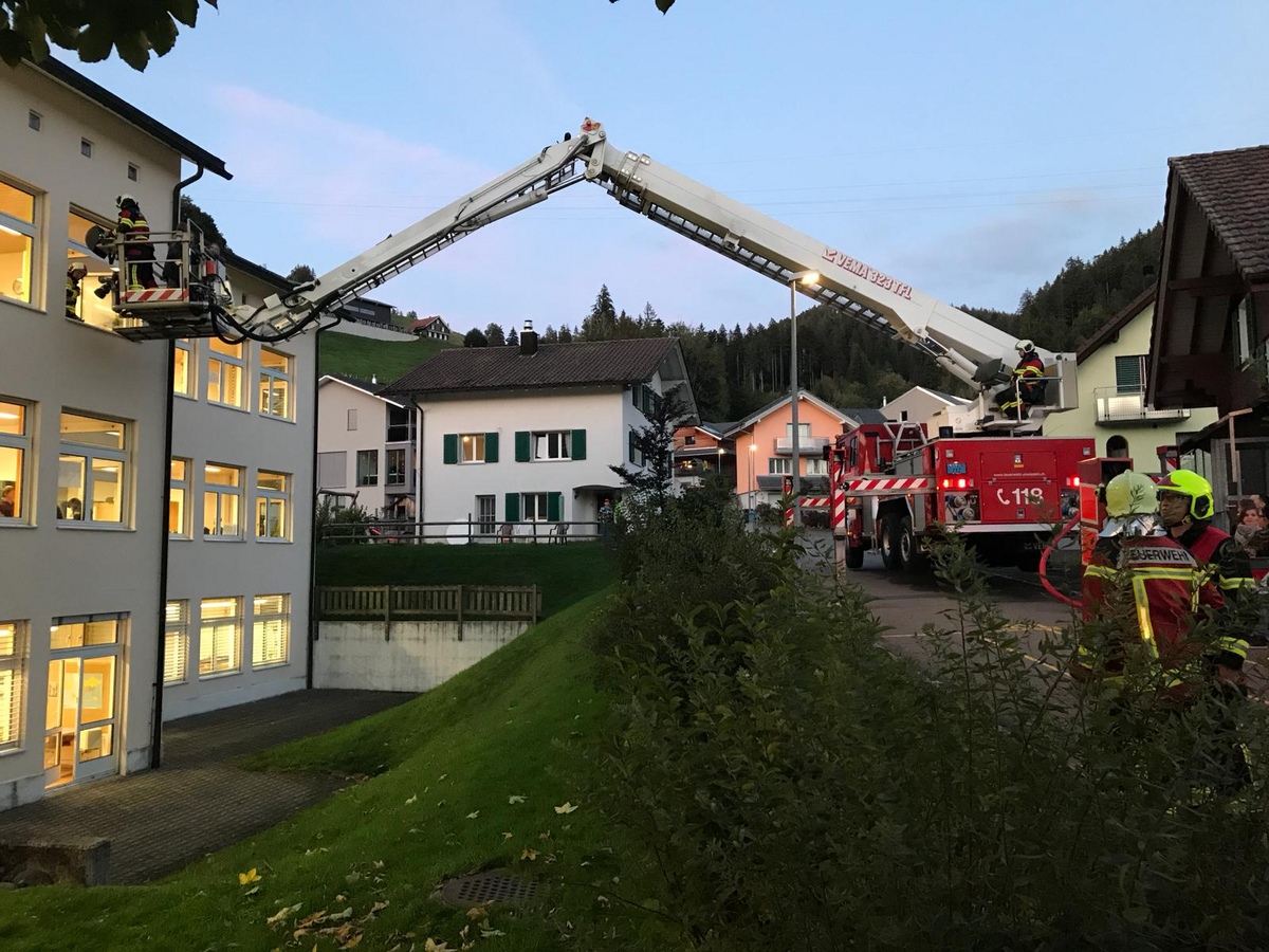 Feuerwehr Muotathal: Einsatzübung Schulhaus mit Hubretter und Grosslüfter MGV
