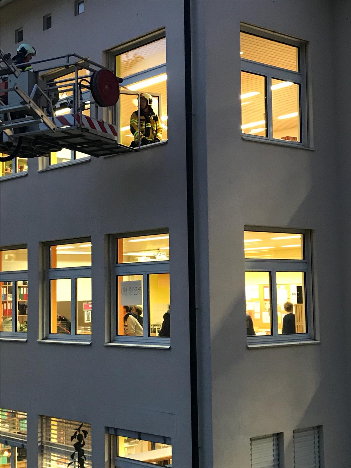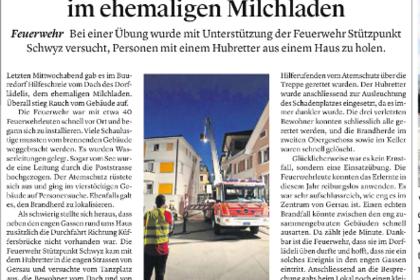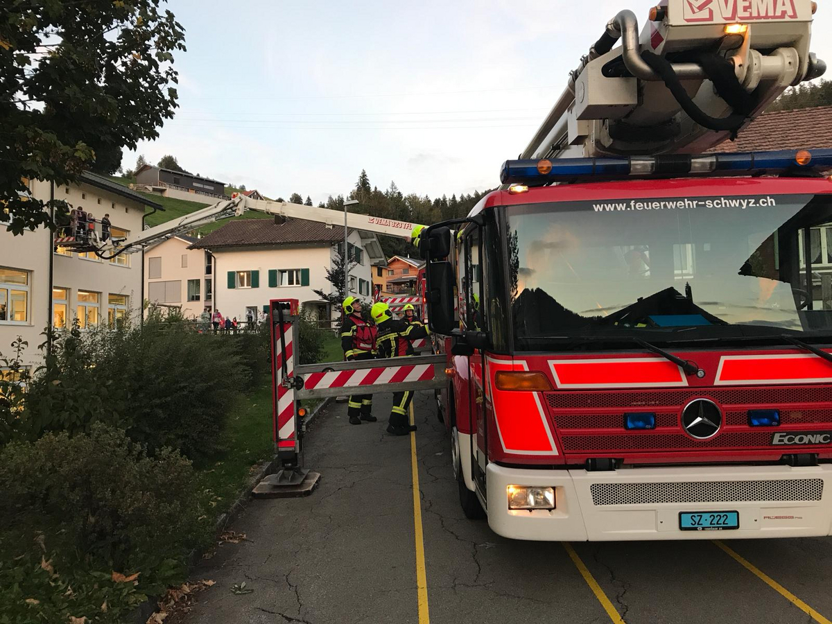 Feuerwehr Rothenthurm: Einsatzübung Schulhaus mit Hubretter