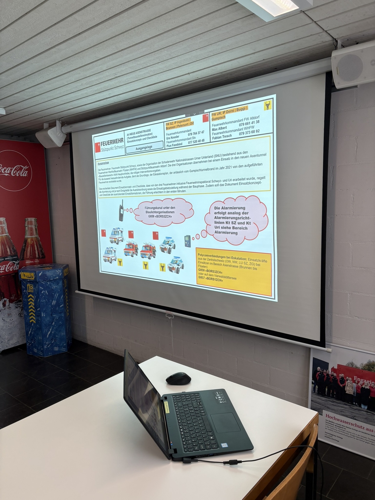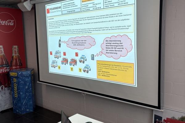 Das Kommando der Feuerwehr Stützpunkt Schwyz, die Kommandanten der Schadenwehr Nationalstrassen Urner Unterland und die Feuerwehrinspektorate der Kantone Schwyz und Uri haben in Absprache mit der Gesamtbauleitung des Projekts A4 Neue Axenstrasse ein 12-seitiges Einsatzkonzept erarbeitet.