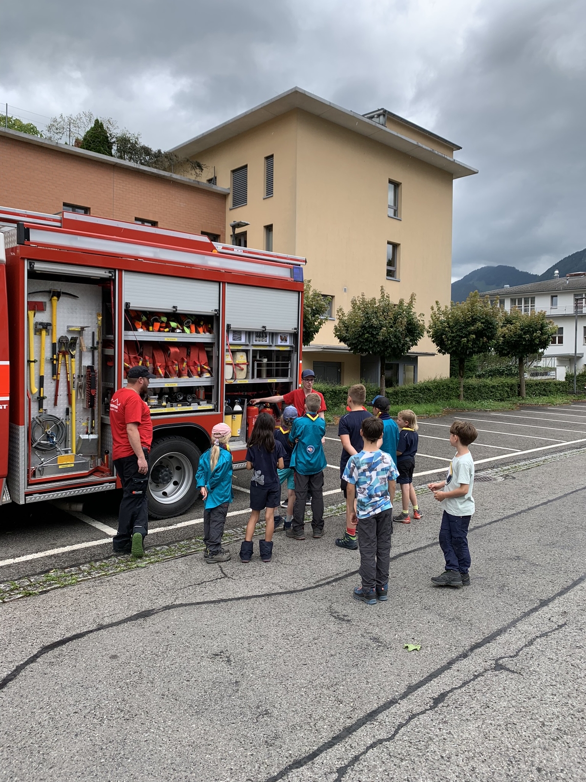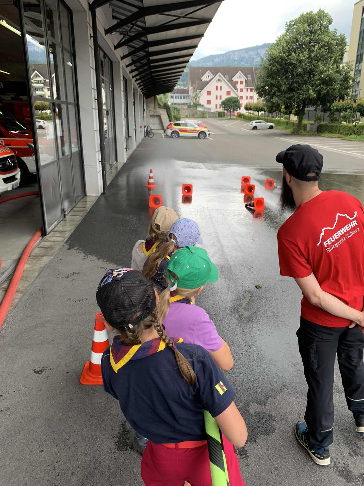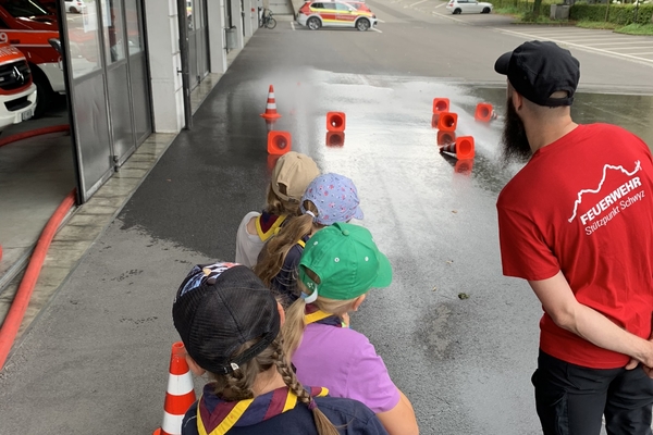 Am Samstag, 6. Juli 2024 besuchten uns rund 34 Kinder von der Pfadi Winkelried im Feuerwehrlokal Schwyz. Die Teilnehmer konnten anhand von vier Posten (Mitfahrt im Feuerwehrauto, Es brennt was tun? Strahlrohrlöschtechnik, was ist alles auf einem TLF verladen) das Feuerwehrhandwerk erschnuppern.