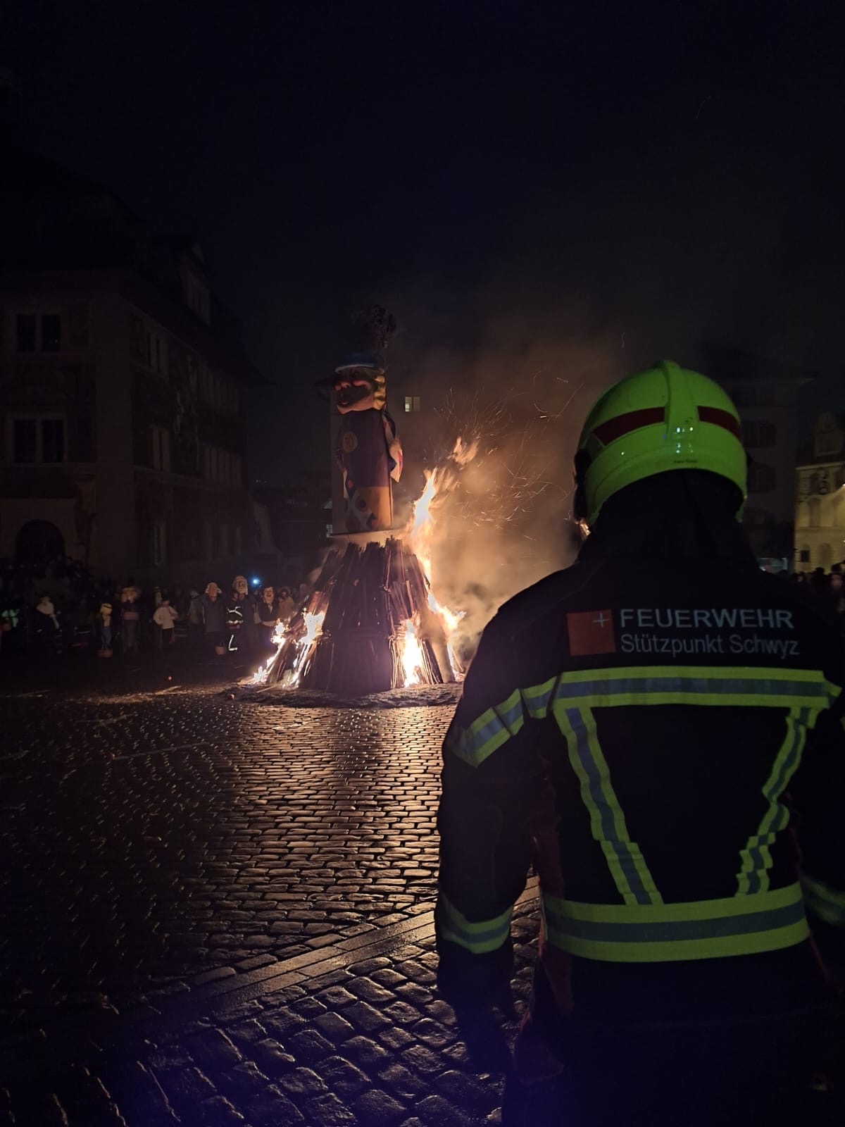 Beim traditionellen Blätzverbrennen am Güdeldienstagabend stand die Feuerwehr Stützpunkt Schwyz zur Überwachung und Sicherheit im Einsatz.