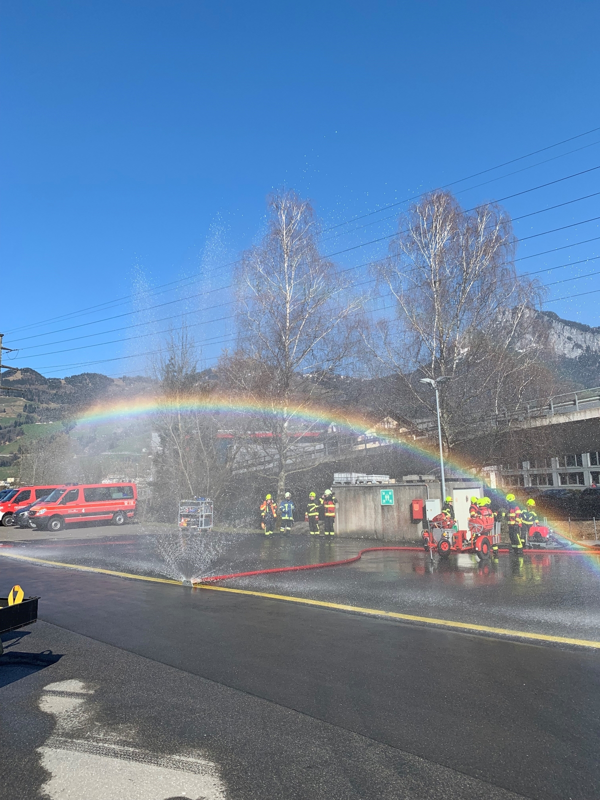 Am 26. März und 27. März 2025 fand der Fachkurs Maschinist auf der Übungsanlage für Feuerwehr und Zivilschutz (UFZ) statt. Die Teilnehmer wurden im sicheren Umgang der verschiedenen Pumpentypen geschult. Sie konnten das gelernte gleich wieder praktisch anwenden und an diversen Posten die verschiedenen Pumpen selbstständig in Betrieb nehmen. Neben der Maschinistenarbeit wurden die Teilnehmer unter anderem auch in der Lokalisierung und Behebung von kleineren Störungen geschult. Der Kurs wurde erfolgreich absolviert, sogar ein Regenbogen wurde produziert.
