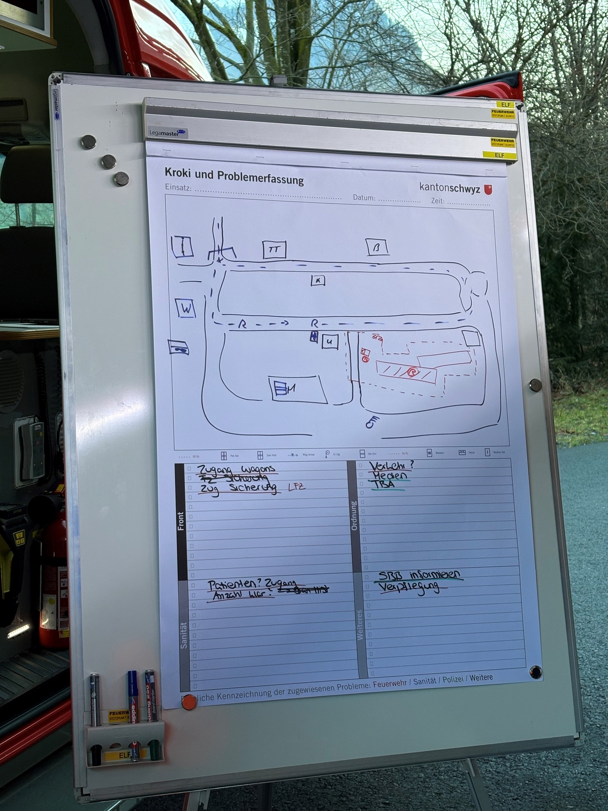 Am 10.12.2025 fand der tägige Fachkurs Führungsunterstützung statt. Die Teilnehmer wurden an diesem Tag in verschiedenen schriftlichen Belangen zur Unterstützung der Einsatzleitung geschult. Zum einen wurde die Visualisierung einer Schadenlage trainiert, das Krokieren und schliesslich auch das Halten eines einfachen Lagevortrags.