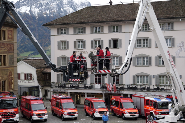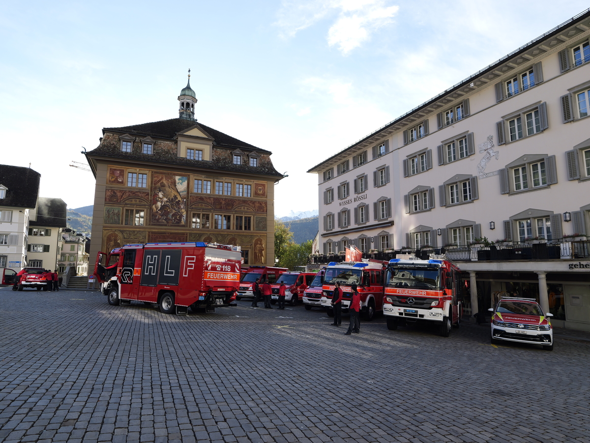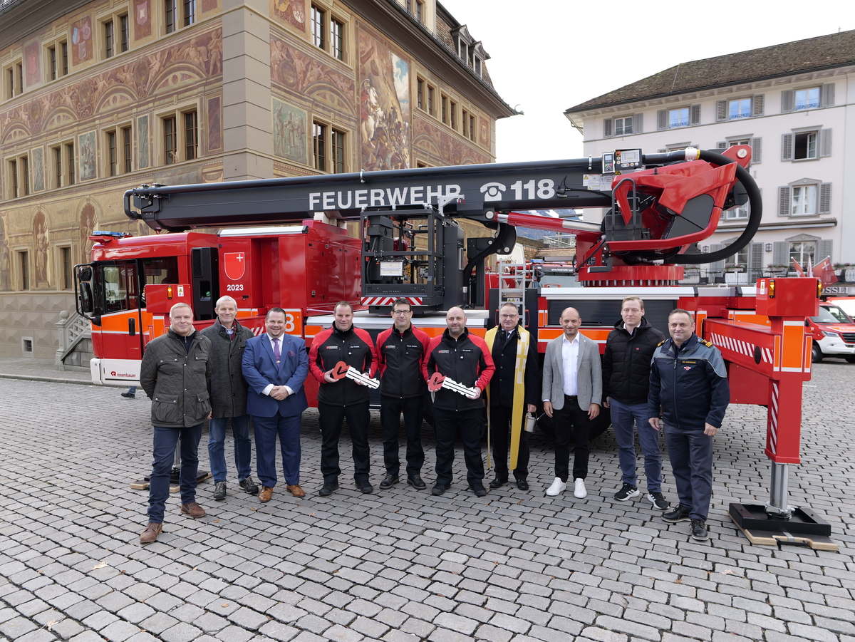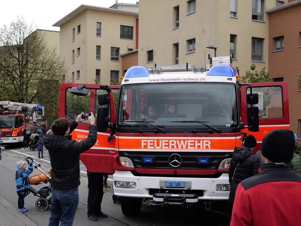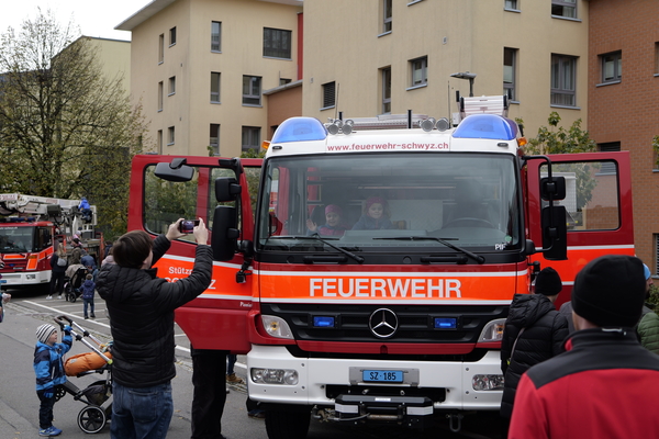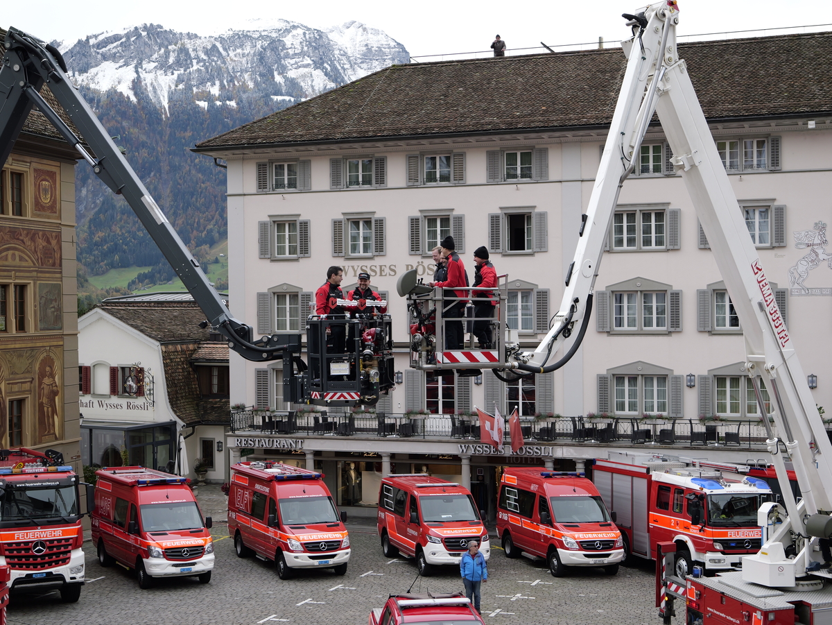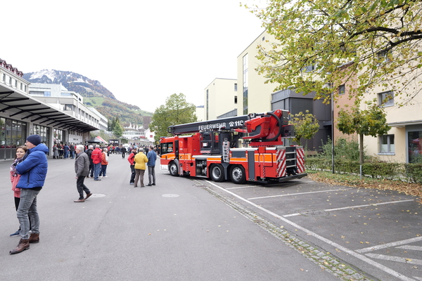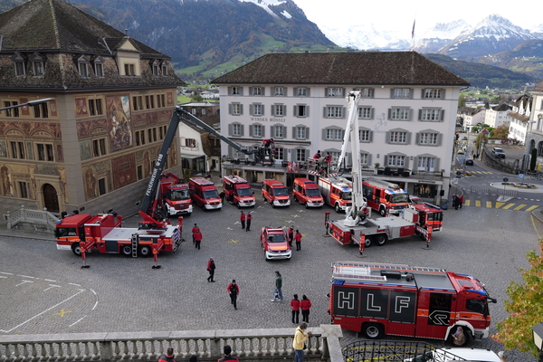 Nach langer Planung konnte am Samstag, 04. November 2023, nun endlich der Tag der offenen Tore der Feuerwehr Stützpunkt Schwyz durchgeführt werden. Der Aufbau für die Einweihung und den anschliessenden Volksapero konnte bei strahlend blauem Himmel gestartet werden. Während den restlichen Festivitäten waren die Wettergötter auf unserer Seite und das Wetter blieb einigermassen gut. Die Einweihung des neuen Hubretters und des Hilfeleistungs - und Löschfahrtzeug wurde durch den Kommandanten Thomas Gwerder eröffnet. Anschliessend wurde mit den Ansprachen der Festredner (Gemeindepräsident Peppino Beffa, Ressortvorsteher Ivo Tschümperlin, Regierungsrat Xaver Schuler, Feuerwehrinspektor Urs Schönbächler und dem Vertreter der Firma Rosenbauer AG - Felix Danuser) die komplexe Arbeit der Feuerwehr herausgehoben und die damit verbunden Notwendigkeit für zuverlässige und hochwertige Fahrzeuge und Gerätschaften. Der offzielle Teil wurde durch die Segnung von Pfarrer Kurt Vogt und der Umrahmung der Feldmusik abgeschlossen.